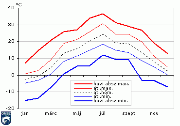 Hazánk éghajlatát globálisan a jelentõs évi hõmérsékletingás jellemzi. A hõmérséklet idõbeli alakulása, az egyes évszakok, hónapok idõjárása nagyon változékony.