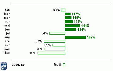 Havi csapadékösszegek 2006-ban az 1961-90-es normál százalékában