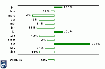 Havi csapadékösszegek 2003-ban az 1961-1990-es normál százalékában