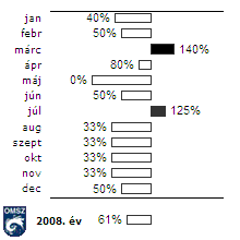Viharos napok száma a normál százalékában, Budapest-Pestszentlõrinc