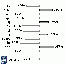 A szélsebesség havi átlagai Budapest-Pestszentlõrincen 2004-ben az 1961-90-es normál százalékában