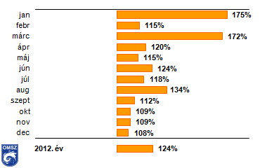 élvezhettünk, ami a sokéves átlagnak 124%-a. A legtöbb napsütés általában júliusban jellemző, összesen 267 óra, 2012-ben azonban az augusztus megelőzte