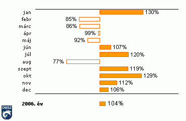 A napsütéses órák havi összegei 2006-ban az 1961-90-es normál százalékában