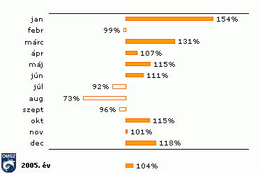A napsütéses órák havi összegei 2005-ben az 1961-90-es normál százalékában