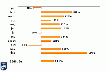 A napsütéses órák havi összegei 2003-ban az 1961-90-es normál százalékában