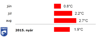 A következőkben összefoglaljuk, hogyan változott a középhőmérséklet hazánkban 2015 nyarán.