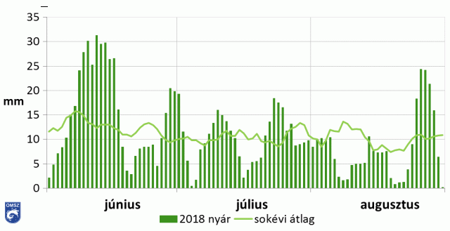 A 2018-as nyár csapadékösszege