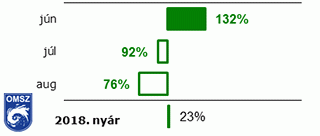 Ahogy 8. ábránkon is jól látható, júniust kivéve a további két nyári hónapban többé-kevésbé elmaradt a csapadékmennyiség a sokévi átlagtól. Míg júniusban a megszokott összegnél 32%-kal több hullott le, addig júliusban 8%-kal, augusztusban pedig már 24%-kal volt kevesebb, mint a sokévi átlag. Összességében az idei nyár az 53. helyezést kapta az 1901-től kezdődő, 118 tagból álló legcsapadékosabb nyarak idősorában (II. táblázat).