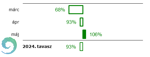 Országos átlagban 130 mm volt a tavaszi csapadékösszeg, ez 7%-kal marad el az 1991-2020-as sokéves normáltól (139 mm). Hazánk legnagyobb részén a lehullott csapadék mennyisége 2024-ben kevesebb volt, mint a sokéves érték. Általában a megszokott mennyiség 60-80%-a érkezett, de a legszárazabb tájakon mindössze a sokéves átlag 40-60%-a hullott. Csapadéktöbblet az Északi-középhegységben (Börzsönytől a Bükkig) és a Győr-Nagyatád vonaltól nyugatra jelentkezett. Ezekben a térségekben a normál 110-160%-át regisztráltuk. A legnagyobb csapadékot adó állomáson, Hagyárosböröndön pedig a megszokott mennyiség 2,5-szerese hullott ezen a tavaszon. (6. ábra).