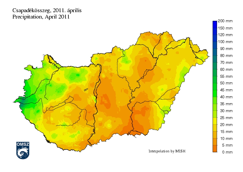 Az ország túlnyomó része szárazabb volt a szokásosnál, csapadékosabb terület csak az Alpokalja térségében rajzolódott ki. Arányaiban a legnagyobb különbség a Duna-Tisza közében és az Alföld délkeleti részén volt jellemző, ahol a sokéves átlagos csapadékmennyiség negyede sem hullott le.