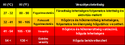 hőmérsékletére és relatív páratartalmára van szükségünk. A hőség index értékeit különböző veszélyességi kategóriákba sorolják be. A veszélyességi