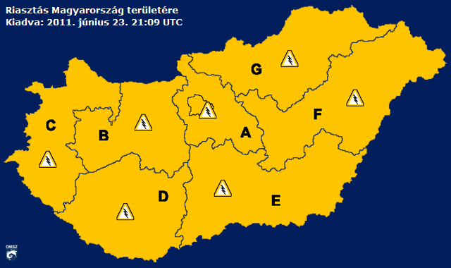 (legkésőbb a D régióban lépett érvénybe), amely már közepes valószínűséggel jelzi legalább kis területen a heves kísérőjelenségek kialakulását