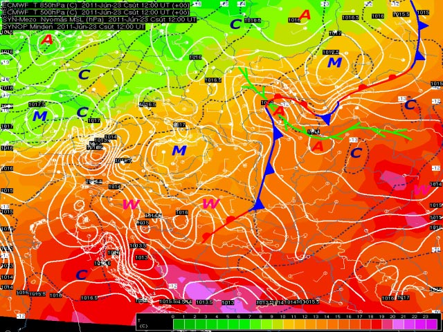 2011.06.23. 12 UTC szinoptikus helyzet.