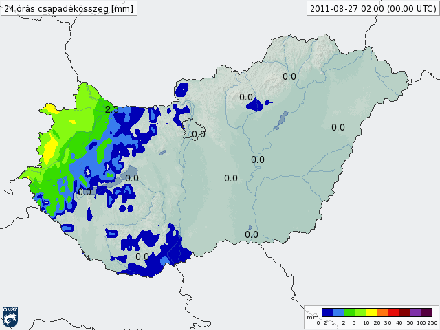 fokozatosan gyengültek, és pl. Péren már egy csepp eső sem esett, amit jól illusztrál az országos csapadéktérkép is (2. ábra.)