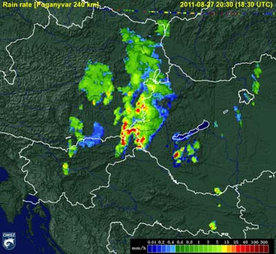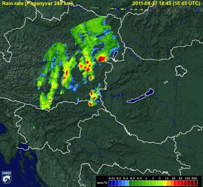 északnyugati részén heves záporok, zivatarok pattantak ki. Sopron környékén, a határon kívül valószínű, hogy szupercella alakult ki, amely végig az