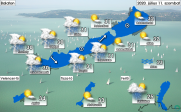 Augusztus utolsó napján a lehűlést okozó front és csapadékrendszere nagy robajjal (villámlás, felhőszakadás, szélvihar) haladt át az országon. Napközben egyre kevesebb helyen eshet, estére az északi határvidéken is megszűnik a csapadék. Főként a Dunántúlon erős nyugatias szélre kell számítani. A hőmérsékleti maximumok a Dunántúlon jellemzően 20 fok alatt, a Tiszántúlon 24 fok felett alakulnak. |