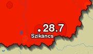 Sorozatban már a harmadik nap, amikor – az előzetes adatok alapján – megdőlt az országos napi maximum-hőmérséklet rekordja. Október 22-én Szikáncson július végét idéző magasságba emelkedett a hőmérséklet, 28.7 Celsius fokot rögzített az automata meteorológiai mérőállomás. A mai napi eddigi országos rekordot Budapest tartotta 26.2 fokkal, amelyet még 1943-ban mértek. |