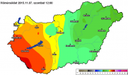 A nap folyamán így zsugorodott a reggel még nagy területet borító ködtakaró. Késő délutánra csak Tiszaalpár és Tiszaújfalu környékén maradt meg, ott a hőmérséklet 5 fok körül alakult. |