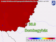 A reggeli rekorddöntések után, délután sem maradtunk új hőmérsékleti szélsőértékek nélkül. Az országos maximum hőmérsékleti rekord mellett a fővárosi melegrekord is megdőlt. Az új szeptember 1-i, országos rekord 36,9 fok, amelyet Dombegyházán (Békés megye) mértek, az új fővárosi rekord pedig 35,4 fok, ezt Újpesten rögzítették. Az eddigi országos maximum hőmérsékleti rekord szeptember elsején 35,2 (2012, Körösszakál), míg a budapesti 34,1 fok (1942) volt. Érdekességként megjegyezzük, hogy a fővárosi rekord egyben szeptemberi rekord is, vagyis szeptemberben ilyen magas maximum hőmérséklet eddig nem szerepelt a fővárosi adatsorban. A mai után a második helyen szeptember 20-a áll, az aznapi rekord 35,2 fok 1917-ből (a mai napig ez volt a szeptemberben mért legmagasabb hőmérséklet Budapesten). |