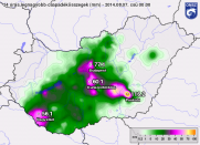Éjszaka az ország középső részén - nagyjából a Budapest-Kiskunhalas vonal szélesebb sávjában - több helyen alakultak ki felhőszakadást okozó zivatarok. Voltak olyan területek, amiket az észak felé helyeződő zivatarcellák többször is érintettek, így összességében ismét jelentős csapadékot hagytak maguk mögött. |