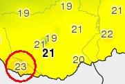 Szombaton hazánk nyugati, északnyugati vidékén már hűvösebb levegő (10-13 fok) alakította az időjárást, ugyanakkor a déli, délkeleti országrész fölé még igen enyhe levegő áramlott. Ez a hőmérsékleti maximumok alakulásában is megnyilvánult, mivel több helyen 20 fok fölé melegedett föl a levegő. Sellyén 23,1 fokos csúcshőmérsékletet mértek, és ez melegrekordot is jelent ezen a napon. A korábbi rekordot Szeged belterületén regisztrálták 1927-ben 21,8 fokos értékkel. |
