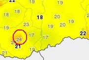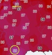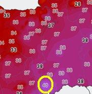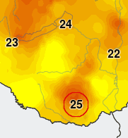 Ahogy azt már napok óta vártuk, ma (2013. július 29-én) több helyen (Kiskunhalas, Kelebia, Sátorhely, Szentgotthárd, Fülöpháza, Baja) megdőlt az országos (1905-ben Orosházán mért 38,8 fok), és a budapesti (1921-ben mért 37,6 fok) melegrekord. A meleg éjszaka után a zavartalan napsütésben gyorsan melegedett a levegő, és délután már az ország nagy részén 35 fok fölé emelkedett a hőmérséklet. A mai legmagasabb hőmérsékletet a Baja mellett fekvő Csávolyon mérték – 40,0 fokot –, ami 1,2 fokkal haladja meg az eddigi rekordot. Budapesten is megdőlt az eddigi rekord, ma 38,5 fokot mértek Újpesten, ami 0,9 fokkal haladja meg az eddigi rekordot. |