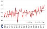 2018 középhőmérséklete országos átlagban 11,99 °C, ez a legmagasabb érték 1901 óta az Országos Meteorológiai Szolgálat (OMSZ) éghajlati adatbázisának jelen állapota szerint. |