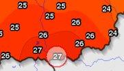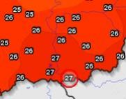 Hazánk déli megyéiben október 27-én több helyen is 25 fok fölé emelkedett a hőmérséklet. Jelentős, több mint 17 fokos hőmérséklet-különbség alakult ki az ország északi és déli területei között. A legmelegebb a Csongrád megyei Kübekházán volt, ahol 27,3 fokot mért a hőmérő délután. Az október 27-ére vonatkozó abszolút maximum rekordját eddig Balatonfenyves tartotta, ahol 1952-ben 26,0 fok volt a legmelegebb órában. |
