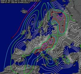 csapadék- és hőmérsékleti viszonyok alakulásáról, továbbá régiókra (Bajorország-Ausztria, Kárpát-medence) bontva felhőzeti és csapadékprognózist,
