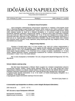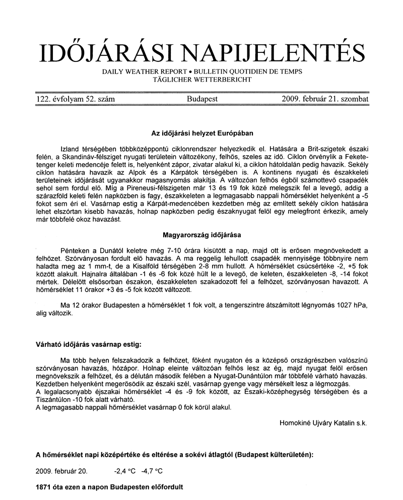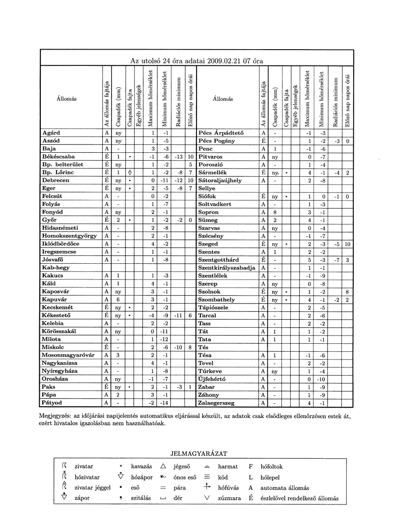 | 1. ábra Időjárási Napijelentés 1. oldala (2009. február 21.) |