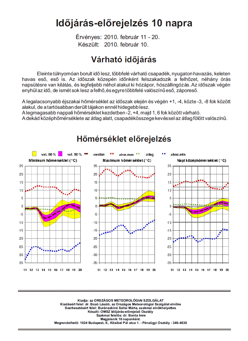 | 3. ábra Az Időjárás-előrejelzés 10 napra 1. oldala (2010. február 10.) |