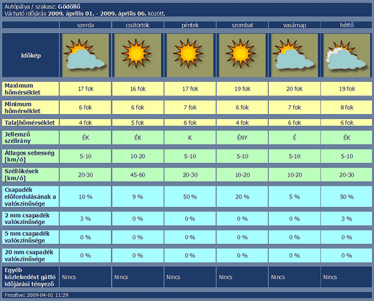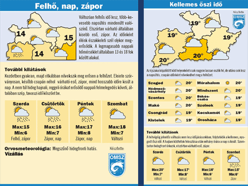 a napsütéses órák várható számáról, veszélyes mértékű zúzmara-képződésről, villámcsapásról is.