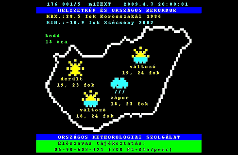Az MTV teletext részére elkészítjük a megjelenítésre kész video grafikát, naponta több alkalommal frissítjük az időjárási oldalakat (2. ábra). Kereskedelmi televíziók számára is szolgáltatunk teletexten megjelenő információkat.