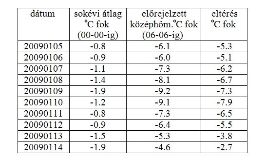 Középhőmérséklet előrejelzés Budapest térségére