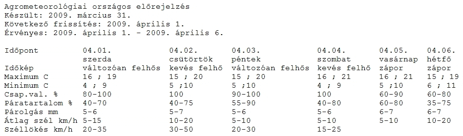 Vannak országos, vidéki, sőt határon túli ügyfeleink is. Nyomdakészen kapják tőlünk a teljes prognózist szöveggel, képekkel, adatokkal együtt (1. ábra). Az újságírók számára bármikor rendelkezésre állunk külön kérés, illetve külön kérdések esetén.